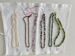 Position 1: Chrysopras Strang 40cm lang Position 2: Aventurin Strang 38 cm lang Position 3 und 5 : Amethyst Nuggets hell und dunkel, je 39 cm lang. Position 5: Grant Strang facettiert ca 4...