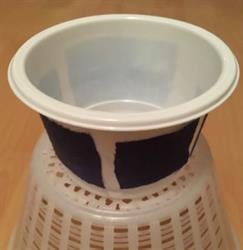 Deko plastik Becher mit blauem Stoff im Jeansstyle, für Pflanzen gemäss Bild. Höhe 6,5cm Durchmesser 9,5cm Vorauszahlung 1 Stück Deko Becher CHF 25.- Versandspesen Inland CHF 12.- Umtausch nicht mögl...