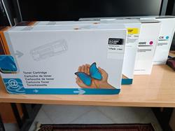 Anfang des Monats habe ich die ausgeschrieben Tonerkassetten gekauft. Beim Versuch die gelbe Tasse zu installieren bemerkte ich erst, dass ich mich in der Produkte-Nummer getäuscht habe. Aktueller P...